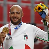 (Photo: Gold medallist Lamont Marcell Jacobs of Italy celebrates with his medal at the Olympic Games in Tokyo. Credit: Reuters/Phil Noble)