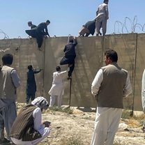 (Photo: Men try to get inside Hamid Karzai International Airport in Kabul, Afghanistan. Credit: Reuters/Stringer)