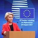 (Photo: EU press conference after a virtual G7 leaders meeting on Afghanistan 24/08/2021. Credit: European Pressphoto Agency)