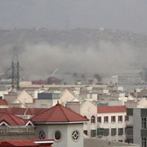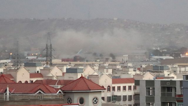 (Photo: Smoke billows from the airport area after a blast outside the Hamid Karzai International Airport, in Kabul, Afghanistan, 26 August 2021. At least 13 people including children were killed in a blast outside the airport on 26 August. The blast occurred outside the Abbey Gate and follows recent security warnings of attacks ahead of the 31 August deadline for US troops withdrawal. Credit: AKHTER GULFAM/EPA)