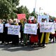 (Photo: Women hold banners as they attend a demonstration in Mazar-e-Sharif, Afghanistan September 6, 2021. Credit: Shamshad News/via Reuters.)