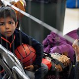 (Photo: Afghan refugees are processed inside Hangar 5 at Ramstein Air Base in Germany, 8 September 2021. Credit: Olivier Douliery/Reuters)
