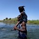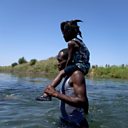 (Photo: A man carrying a child on his shoulders wades across the Rio Grande river from the United States to Mexico, as thousands of migrants, many of them Haitian, remain camped under a bridge in Del Rio, Texas, USA, 20 September 2021. Credit: EPA/ALLISON DINNER)