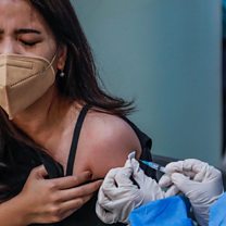 (Photo: A woman reacts as she receives a dose of Sinovac Covid-19 vaccine during a vaccination drive in Medan, Indonesia, 29 November 2021. Credit: EPA)