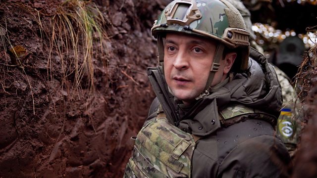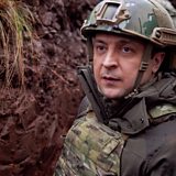 (Ukrainian President Volodymyr Zelensky visits frontline positions in the Donetsk region, Ukraine 06/12/2021. Credit: EPA)