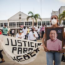 (Photo: Journalists, friends, and relatives of the journalist Heber Lopez demand justice for his murder that occurred on 10 February 2022 and to demand security in the face of the wave of murders of other journalists, in Salina Cruz, Oaxaca state, Mexico, 17 February 2022. Credit: Luis Villalobos/EPA