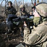 (Photo: Ukrainian military forces on the frontline with Russia-backed separatists near the Donetsk region. Credit Getty Images)