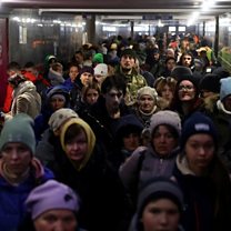 (Photo: People wait for transfer trains following the ongoing Russia"s invasion, at the main train station in Lviv, Ukraine. Credit: Reuters/Kai Pfaffenbach)