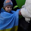(Photo: Ivan Iustushenko, age five, is wrapped in a Ukrainian flag by his grandmother after fleeing from Mariupol in Ukraine to Romania, 22 March, 2022. Credit: Clodagh Kilcoyne/Reuters)