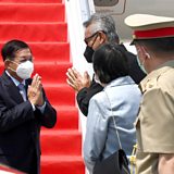 General Min Aung Hlaing who seized power in February arrives for meeting in Indonesia.
