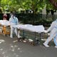 (Health workers in Delhi, wearing personal protective equipment (PPE), carry bodies of people who were suffering from the coronavirus disease; Credit: REUTERS/Adnan Abidi)