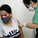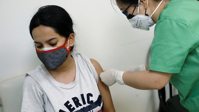(Picture: A healthcare worker gives a dose of vaccine manufactured by Serum Institute of India to a woman at a hospital in New Delhi.