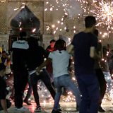 (Photo:Palestinians react as Israeli police fire stun grenades during clashes at the compound that houses Al-Aqsa Mosque. Credit: REUTERS/Ammar Awad)