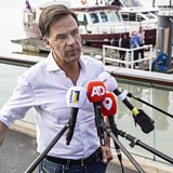 (Image: Dutch Prime Minister, Mark Rutte, speaks to the press in Venlo, the Netherlands, after heavy rains caused floods in many parts of the country. Credit: EPA)