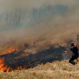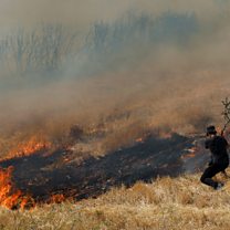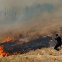 (Photo: A man beats the flames using a tree branch as a wildfire burns near Agios Stefanos, north of Athens. CREDIT: REUTERS/Costas Baltas)