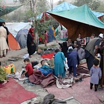 (Photo: Families staying at makeshift camps in Kabul after fleeing the violence. Credit: Getty Images)