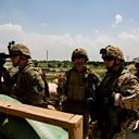 (Photo: US Marines and a German service member watch an entry gate during an evacuation at Hamid Karzai International Airport, Kabul. Credit: US Marine Corps/Cpl. Davis Harris/Handout via Reuters)