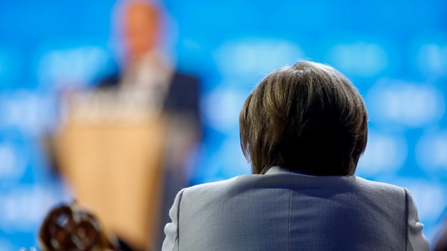 (Picture: German Chancellor Angela Merkel attends a rally in Munich. Credit: Reuters / Rehle)