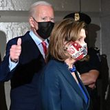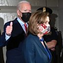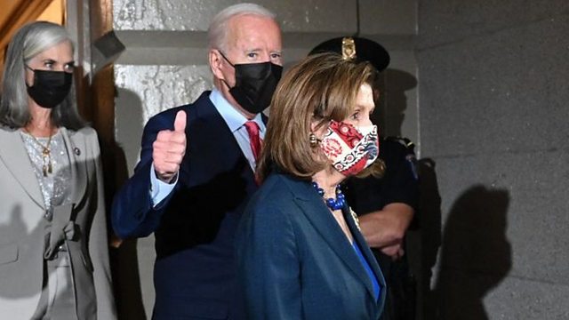 (Picture: Mr Biden flashed a thumbs up as he arrived for budget talks. Credit: Getty Images)