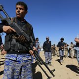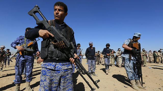 (Image: Houthi fighters in Sana'a. Credit: EPA/Yahya Arhab)