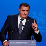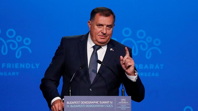(Image: Member of Bosnia-Herzegovina's Presidency, Milorad Dodik, speaks at a summit in Budapest, Hungary. Credit: REUTERS)