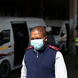 (Picture shows a black health worker wearing a face mask as he walks past a taxi in Soweto, South Africa on 26 November 2021. Credit: REUTERS/Siphiwe Sibeko).