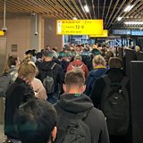 (Picture: Passengers travelling from South Africa queue to be tested for coronavirus after being held on the tarmac at Schiphol Airport. Credit: Reuters)