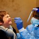 Photo shows a healthcare worker taking a swab sample from a woman to test for the coronavirus disease in Brussels. Credit: Reuters.