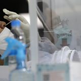 (Photo: A Thai health official collects swab samples for COVID-19 testing during a mass COVID-19 test to prevent the Omicron variant at a school in Thailand. CREDIT: EPA/NARONG SANGNAK)