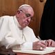 (Photo: Pope Francis writes in a book after meeting with Greek Orthodox church Archbishop Ieronimos at the Orthodox Archbishopric of Greece, in Athens, Greece. CREDIT: George Vitsaras/Pool via REUTERS)