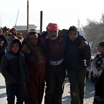 (Photo: Syrian Kurdish people, who just fled their houses due the clashes with Islamic state group fighters (IS), arrive at Syria democratic forces (SDF) checkpoint at Ghweran district in Hasaka, northeastern Syria, 21 January 2022. EPA/AHMED MARDNLI)