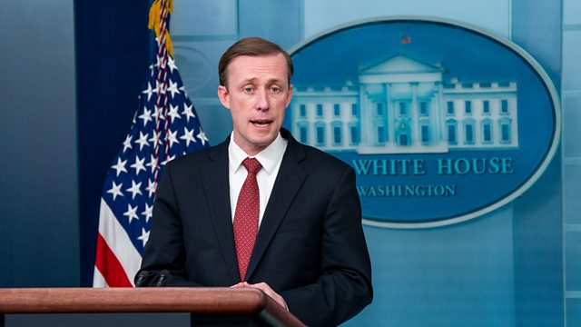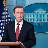 (Photo: National Security Advisor Jake Sullivan responds to questions at the White House. Credit: EPA/Shawn Thew/Pool)