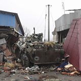 (Image: A damaged APS is seen recaptured by the Ukrainian army in a village in the Kyiv area. Credit: EPA/STR)