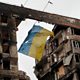 (Photo: An Ukrainian flag near a destroyed building in Mariupol. Credit: Reuters)