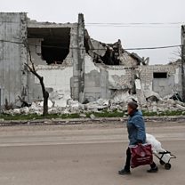 (Picture: A local resident walks past a building destroyed in the southern port city of Mariupol. Credit: Reuters / Ermochenko)