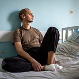 Photo: Nikita Horban, who says he was seized and tortured in Russia, sits in a medical facility in Zaporizhzhya, Ukraine Credit: BBC