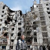 (Photo: Local resident Sergei Shulgin, 62, stands in front of a block of flats in the southern port city of Mariupol, Ukraine. Credit: Reuters).