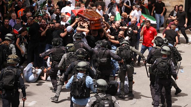 Israeli police charge mourners at the funeral of Shireen Abu Akleh, the Al Jazeera journalist killed in the occupied West Bank on Wednesday. We get the latest from Jerusalem and speak to her brother.