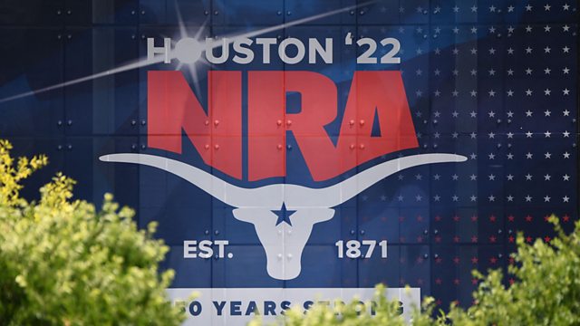 (Picture: a banner for the NRA annual meeting in Houston, Texas. Credit: Getty Images)