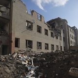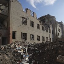 (Picture: A shelling hole near a destroyed building in the Zaytseve village of the Donetsk region, Ukraine, 29 May 2022. Credit: EPA/STR)