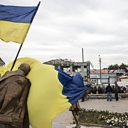 (Photo shows a Ukrainian flag waving in front of a statue in Kharkiv region. Credit: Getty Images)