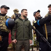 President Volodymyr Zelensky has been to the recaptured city of Izyum, a key logistics hub in eastern Ukraine.