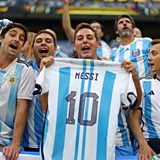 (Photo: Argentina fan displays a Lionel Messi shirt inside the stadium in Qatar. Credit: REUTERS/Hannah Mckay)