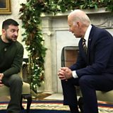 Ukraine's President Volodymyr Zelensky meets US President Joe Biden at the White House.