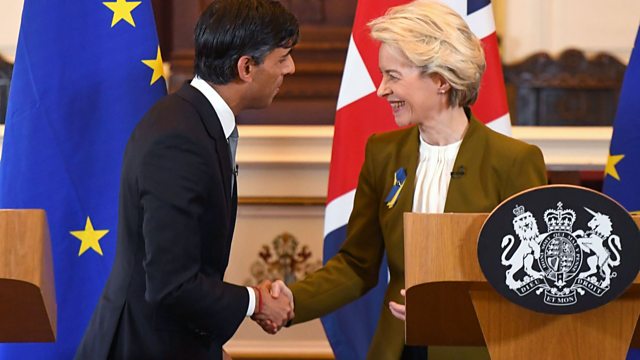 The UK and the EU have finally managed to break the deadlock over trading arrangements for Northern Ireland after Britain's exit from the European Single Market and Customs Union. The British Prime Minister, Rishi Sunak, and Ursula von der Leyen, President of the European Commission, have hailed their deal as a 'decisive breakthrough'. We hear from George Parker of the Financial Times on what it means for Northern Ireland and Britain's relations with the EU.