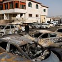 (Picture: A man walks among cars burnt in Hawara. Credit: REUTERS/Ammar Awad)