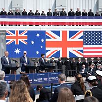 (Photo: Prime Minister Rishi Sunak, US President Joe Biden and Prime Minister of Australia Anthony Albanese at Point Loma naval base, San Diego, US, to discuss the Aukus trilateral security pact, 13 March 2023. Credit: Rousseau/PA Wire)
