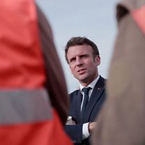 (Photo: Emmanuel Macron meets with workers in Denain Credit: Lewis Joly / AFP)