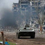 (Photo: Service members of pro-Russian troops ride an armoured vehicle near a plant of Azovstal Iron and Steel Works company in the southern port city of Mariupol. Credit: Reuters/Alexander Ermochenko)