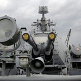 (Photo: Russia's coat of arms, the double headed eagle, is seen on covers of the missile cruiser Moskva in the Ukrainian Black Sea port of Sevastopol September 16, 2008. Credit: Denis Sinyakov/File Photo/Reuters)